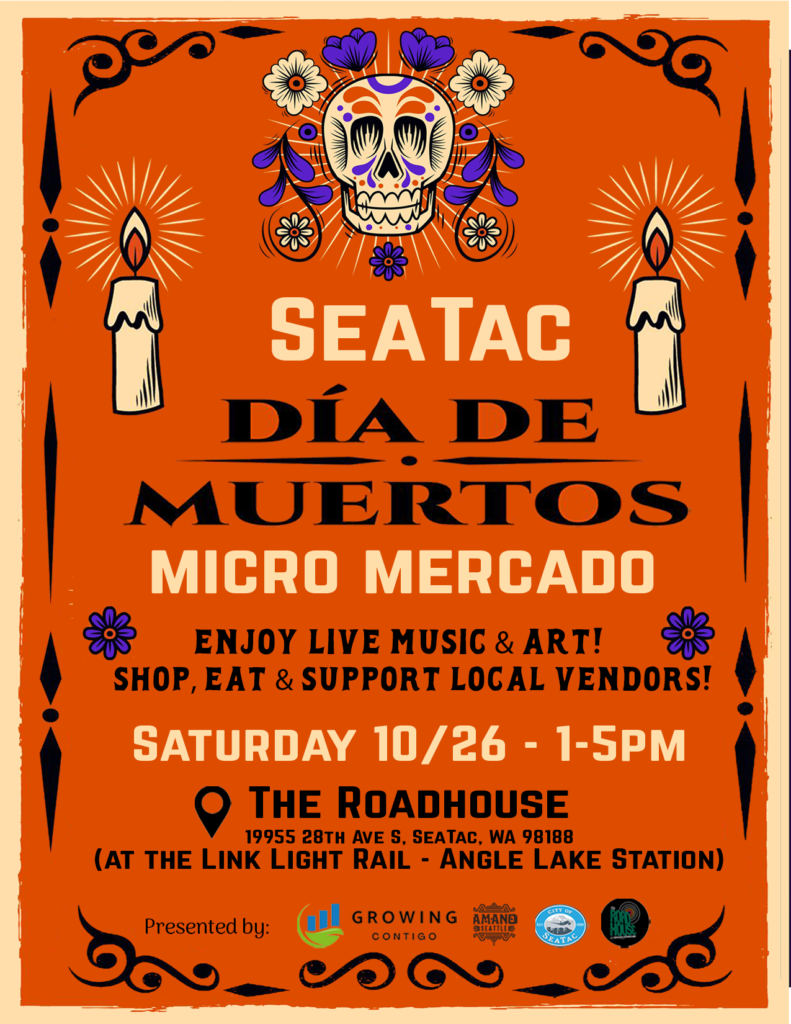 City of SeaTac: Dia de Muertos Micro Mercado November 26, 2024 No Comments We had 2 successful Micro Mercados in collaboration with the City of SeaTac and Amano Seattle! Read More »